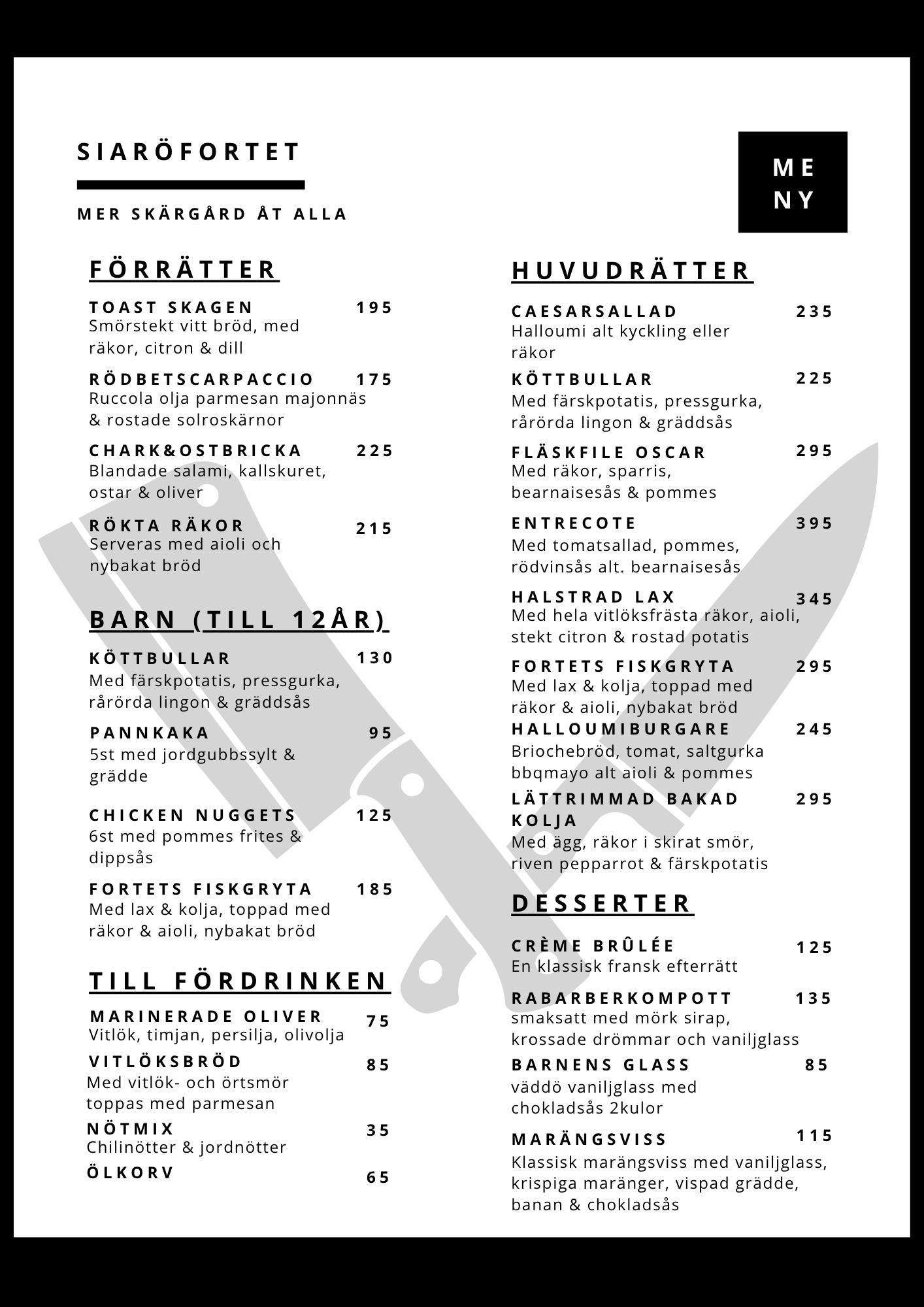 I Siaröfortets härliga sommarcafé och skärgårdskrog lagas all mat från grunden med omsorg och kärlek, vilket gör varje rätt speciell.
